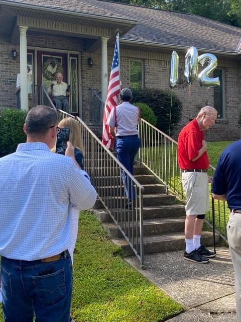 North Columbus Rotarians gathered to celebrate the 102nd birthday of Lt. Nicholas Margaritas. The Color Guard from Columbus High School posted colors as we said the Pledge of Allegiance and sang the National Anthem. Through our partnership with House of Heroes, a local nonprofit who recognizes and honors local veterans, we were able to secure a flag that had been flown over the US Capitol in the veterans honor along with a hand crafted flag case and name plate. After the honor ceremony, we sang happy birthday to Lt. Margaritas